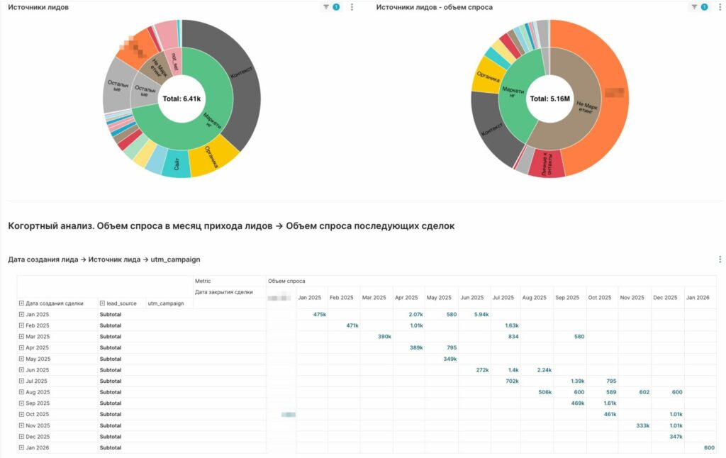 - Для B2B соберите дашборд вокруг воронки (маркетинг → лид → MQL → SQL → сделка), качества и вклада в pipeline/выручку, плюс метрики цикла сделки, LTV и retention.