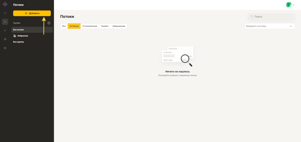 Во вкладке «Потоки» можно отслеживать статусы и журналы выполнения выгрузок, чтобы контролировать процесс передачи данных.